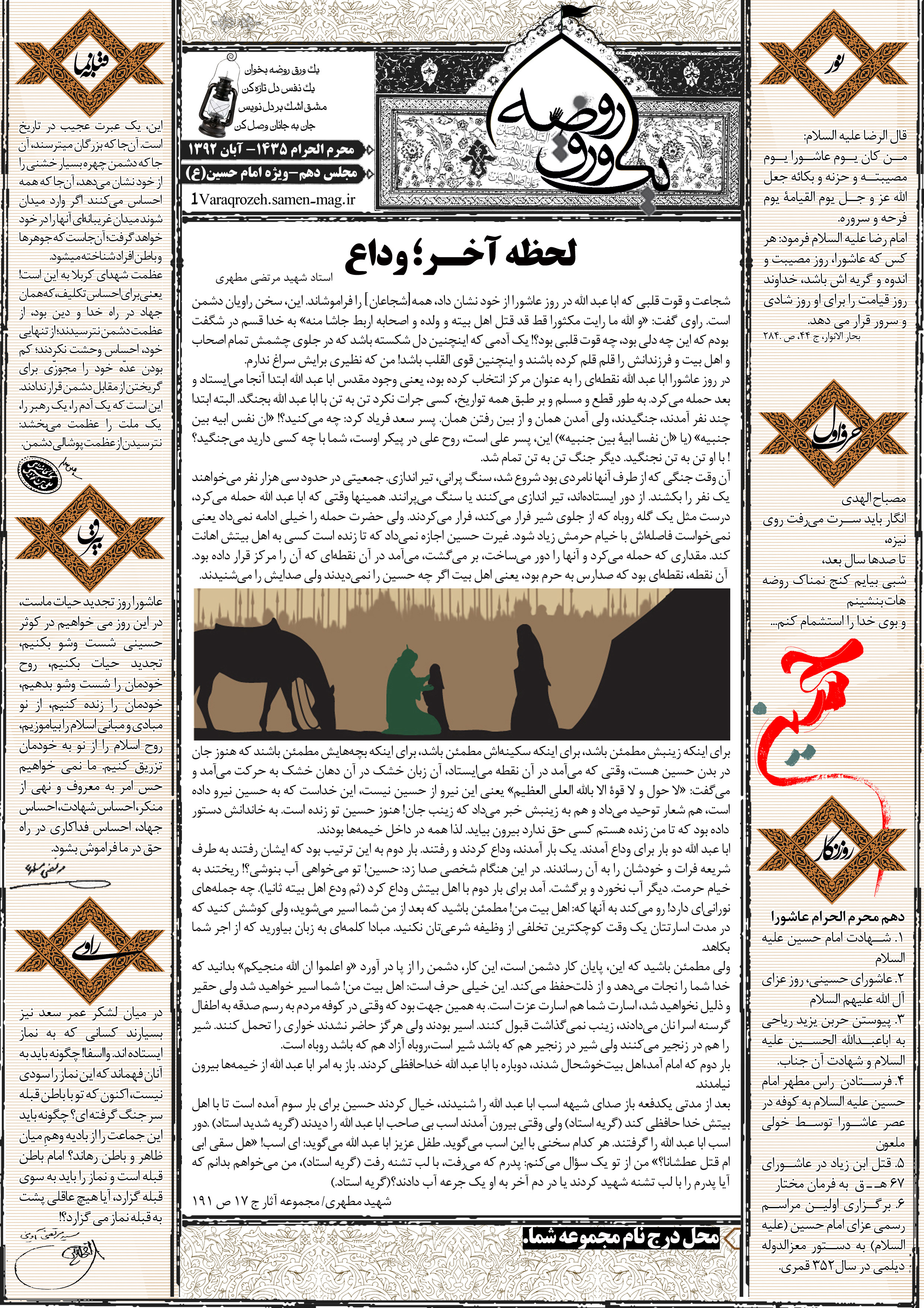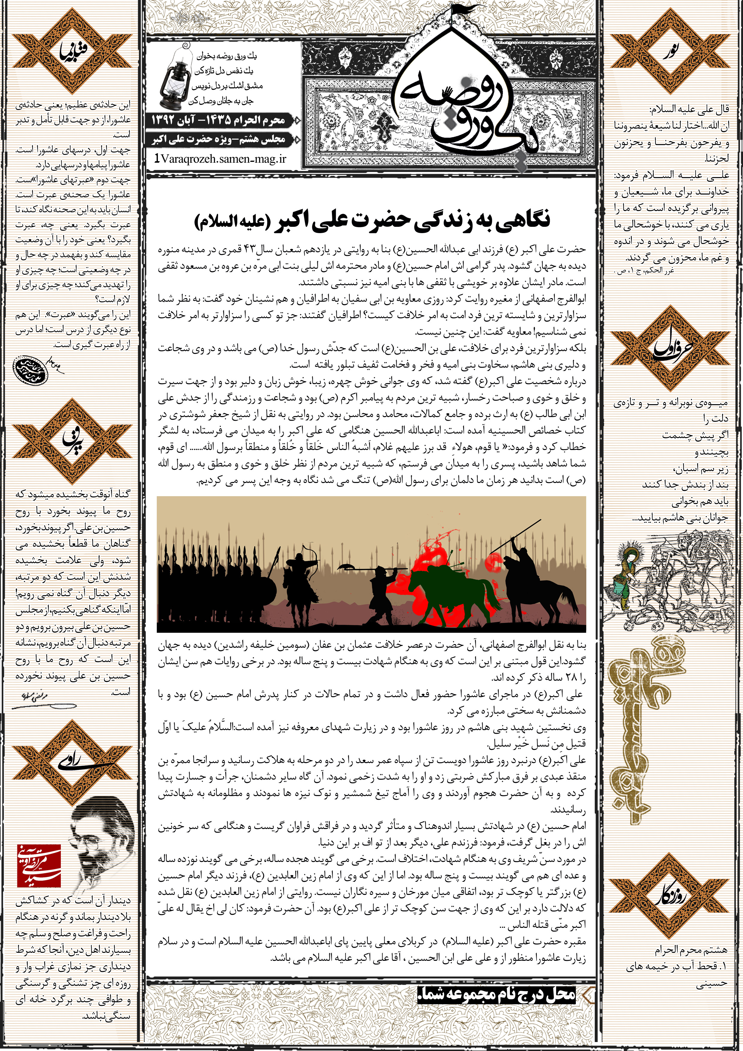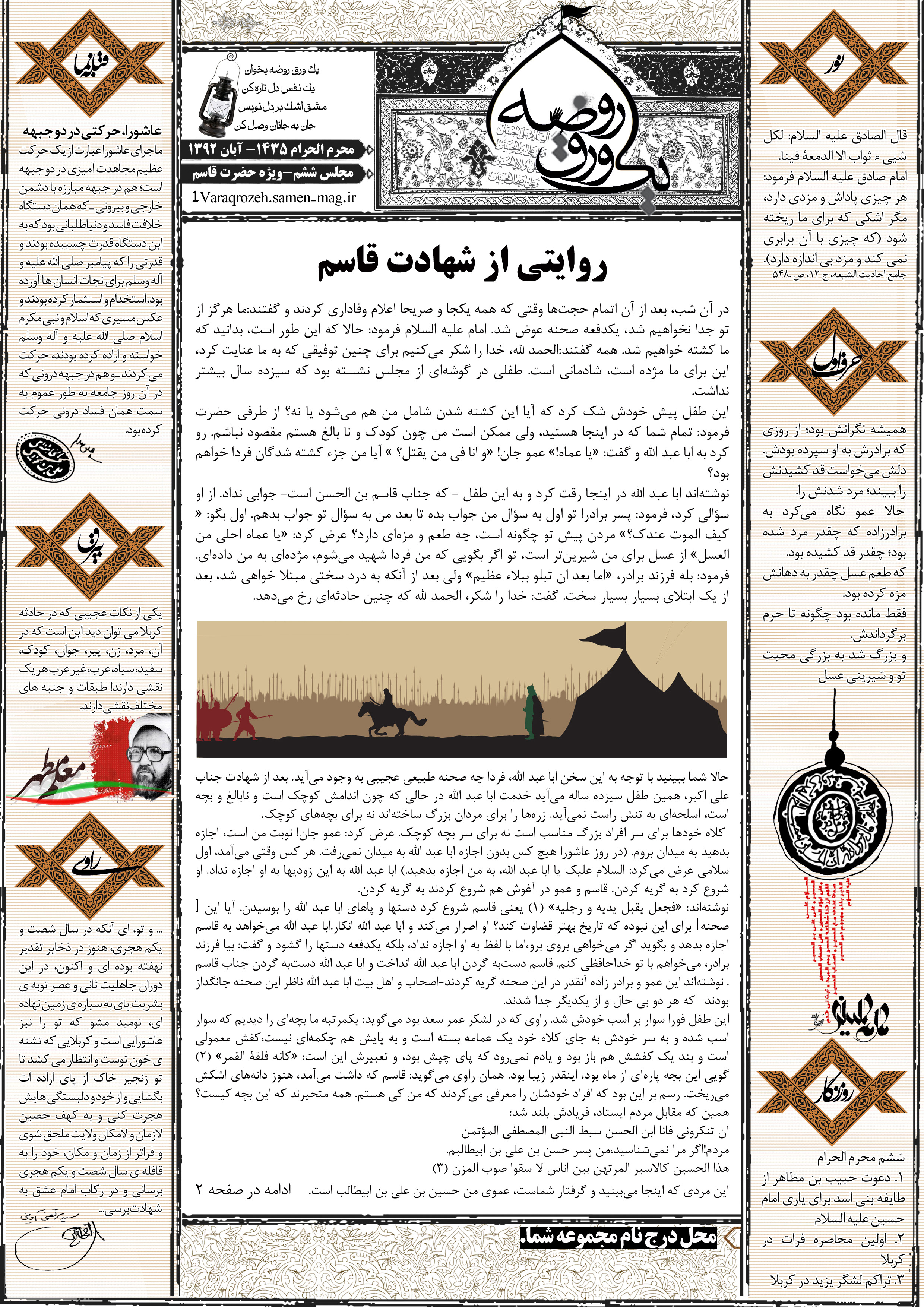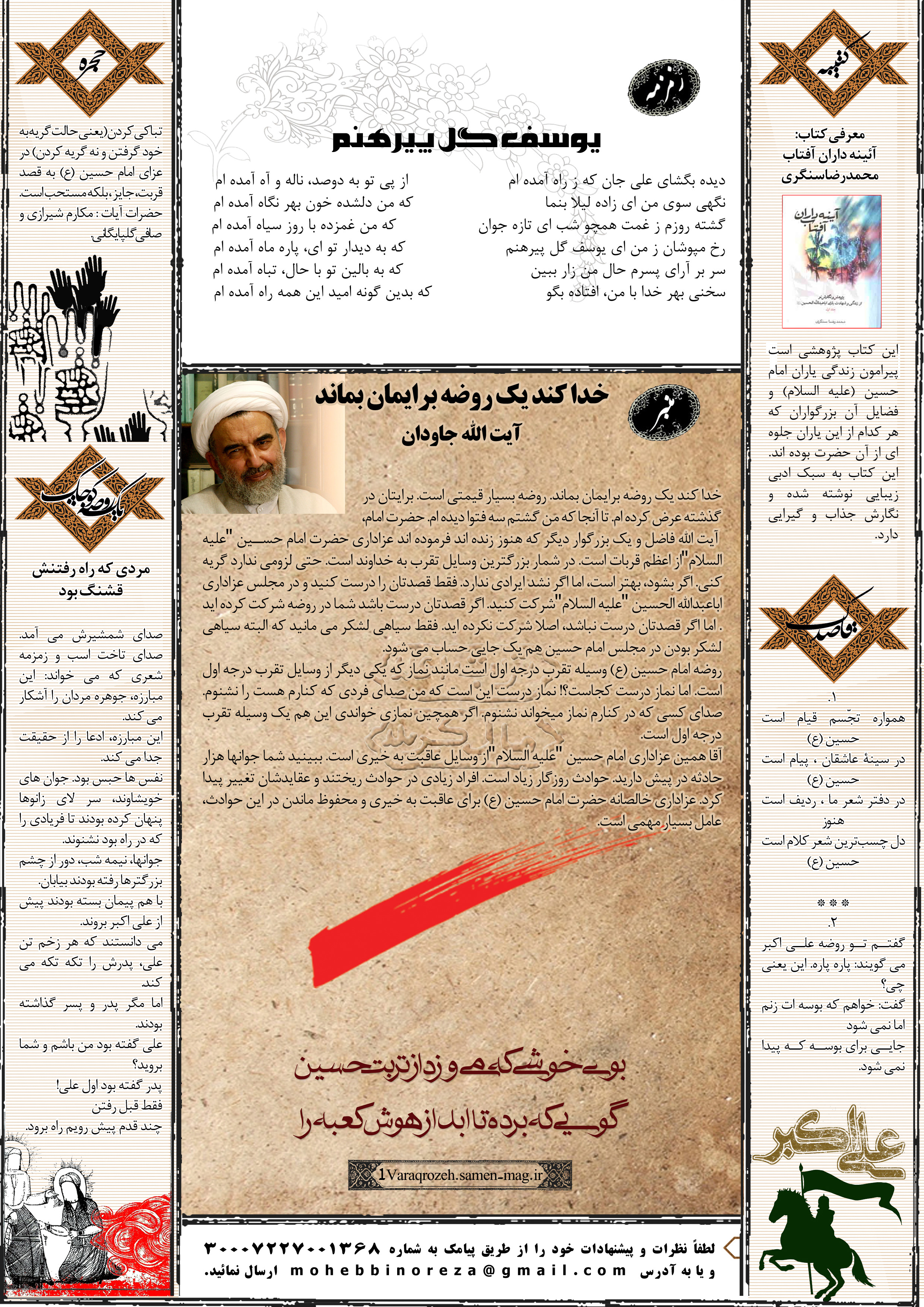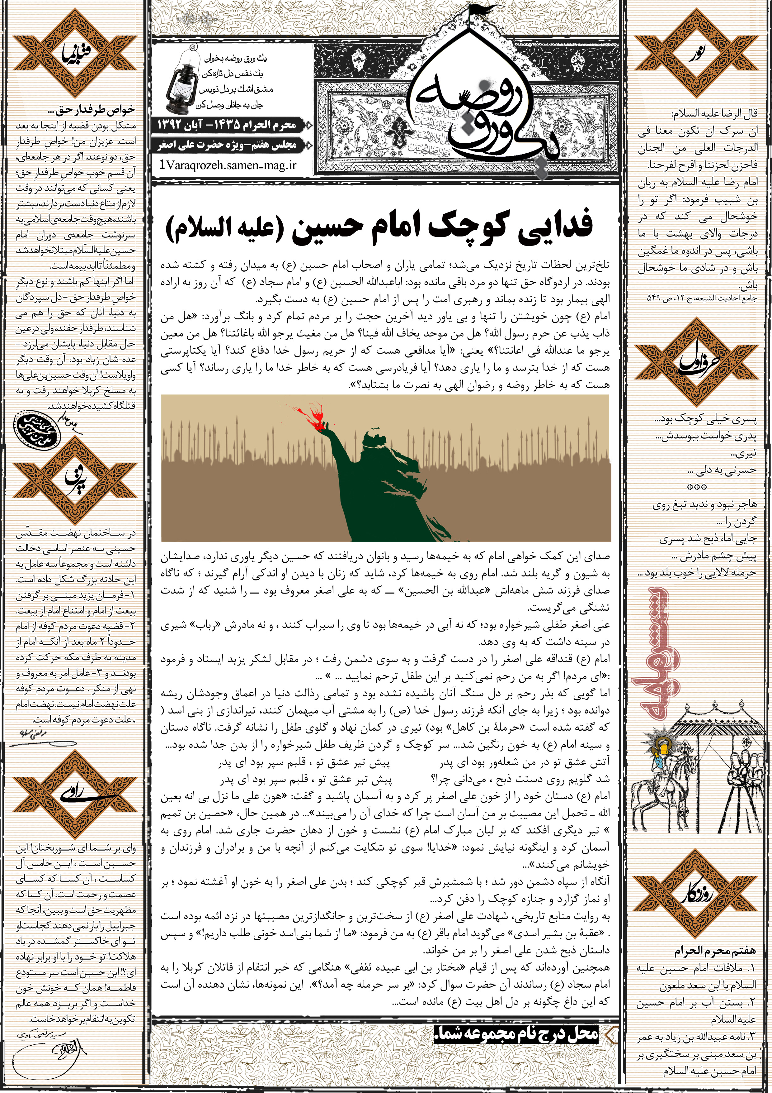 جهت مشاهده پیش نمایش بزرگتر این شماره از «یک ورق روضه» می توانید بر روی تصویر فوق کلیک نمائید.