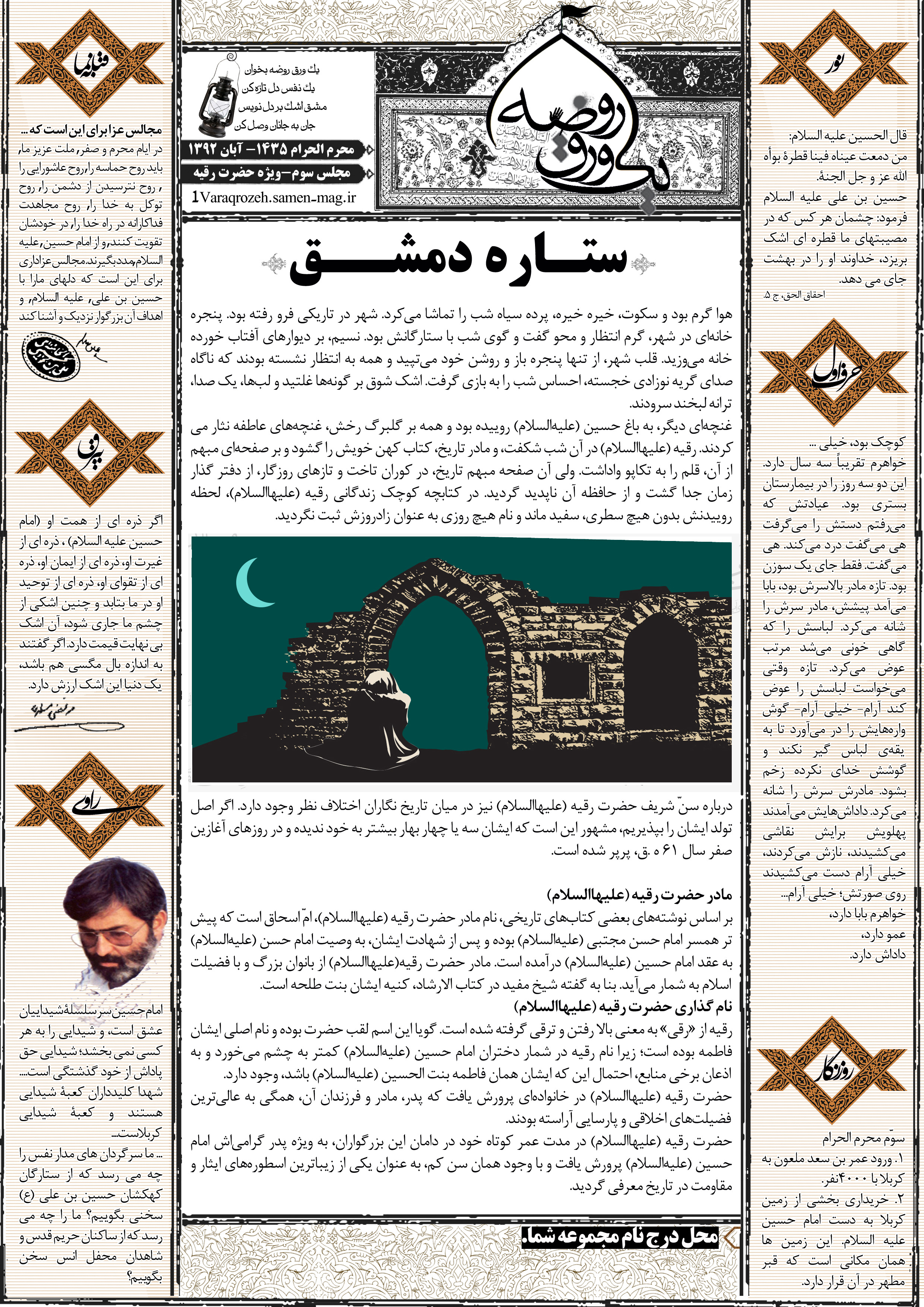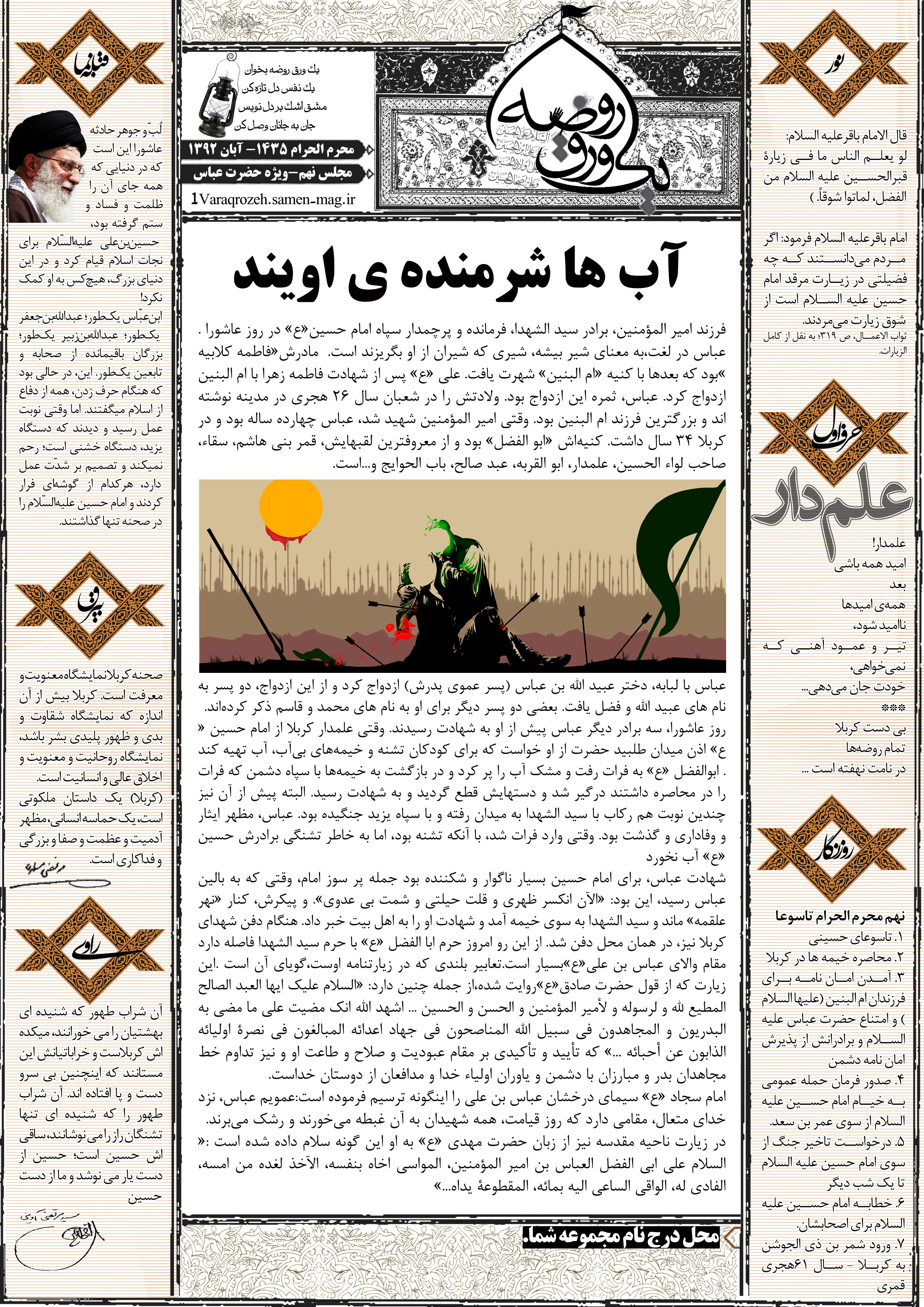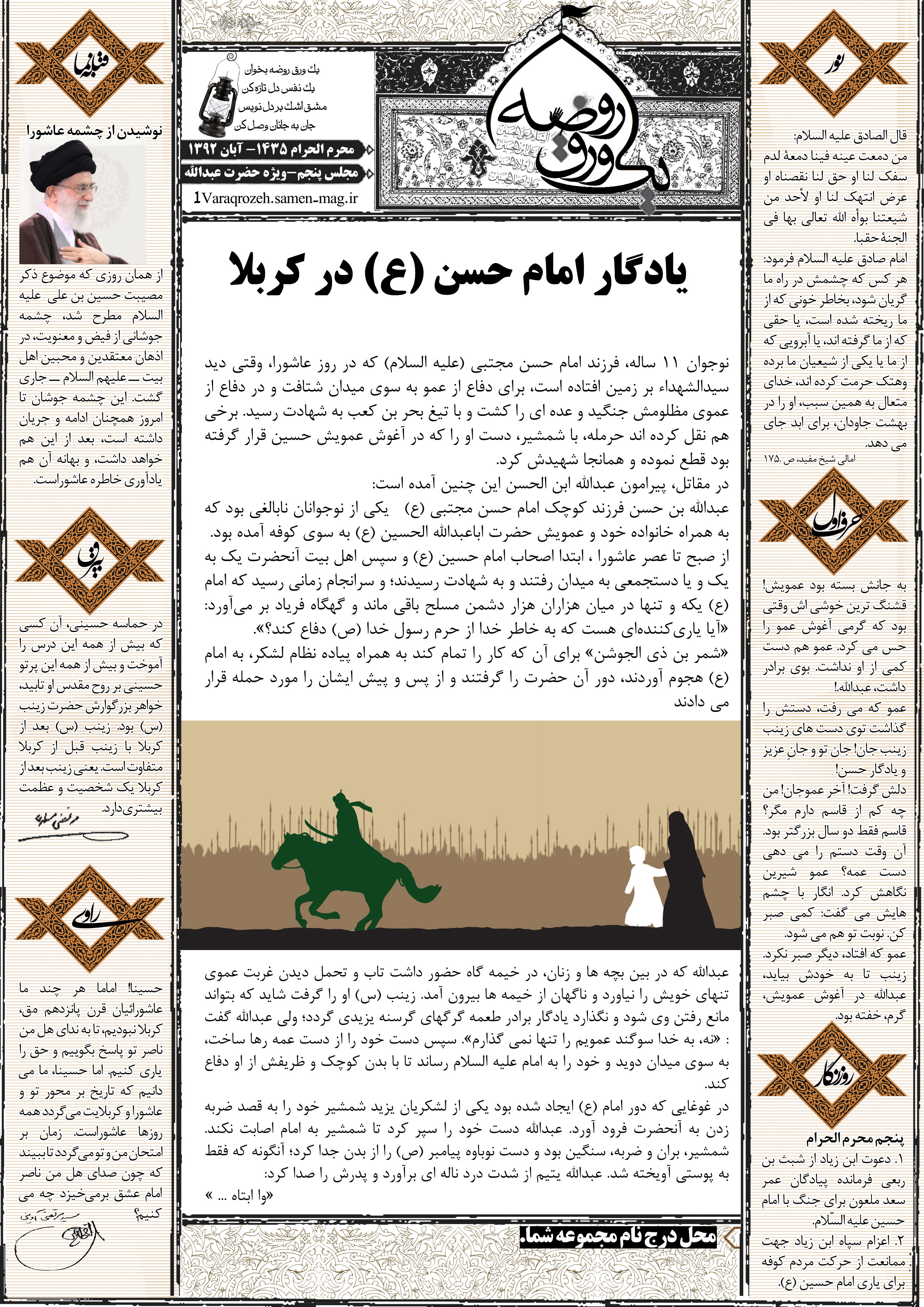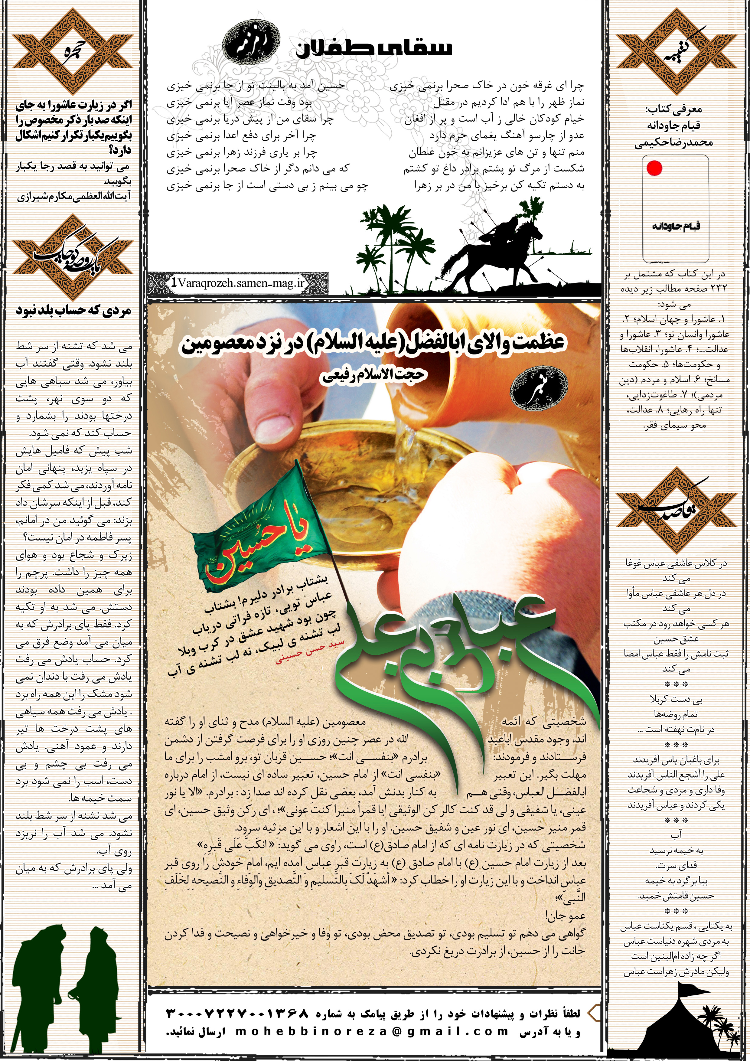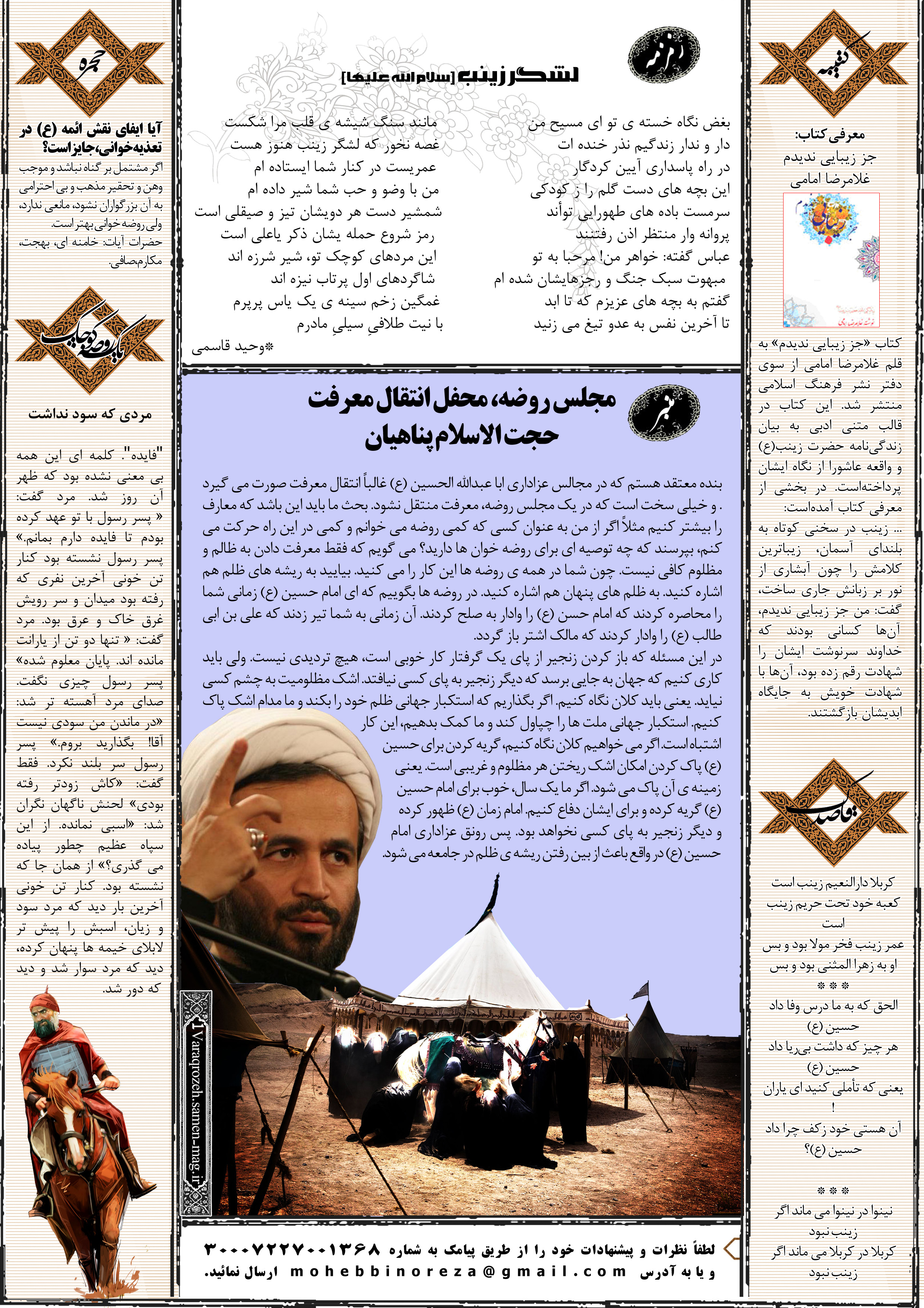 جهت مشاهده پیش نمایش بزرگتر این شماره از «یک ورق روضه» می توانید بر روی تصویر فوق کلیک نمائید.