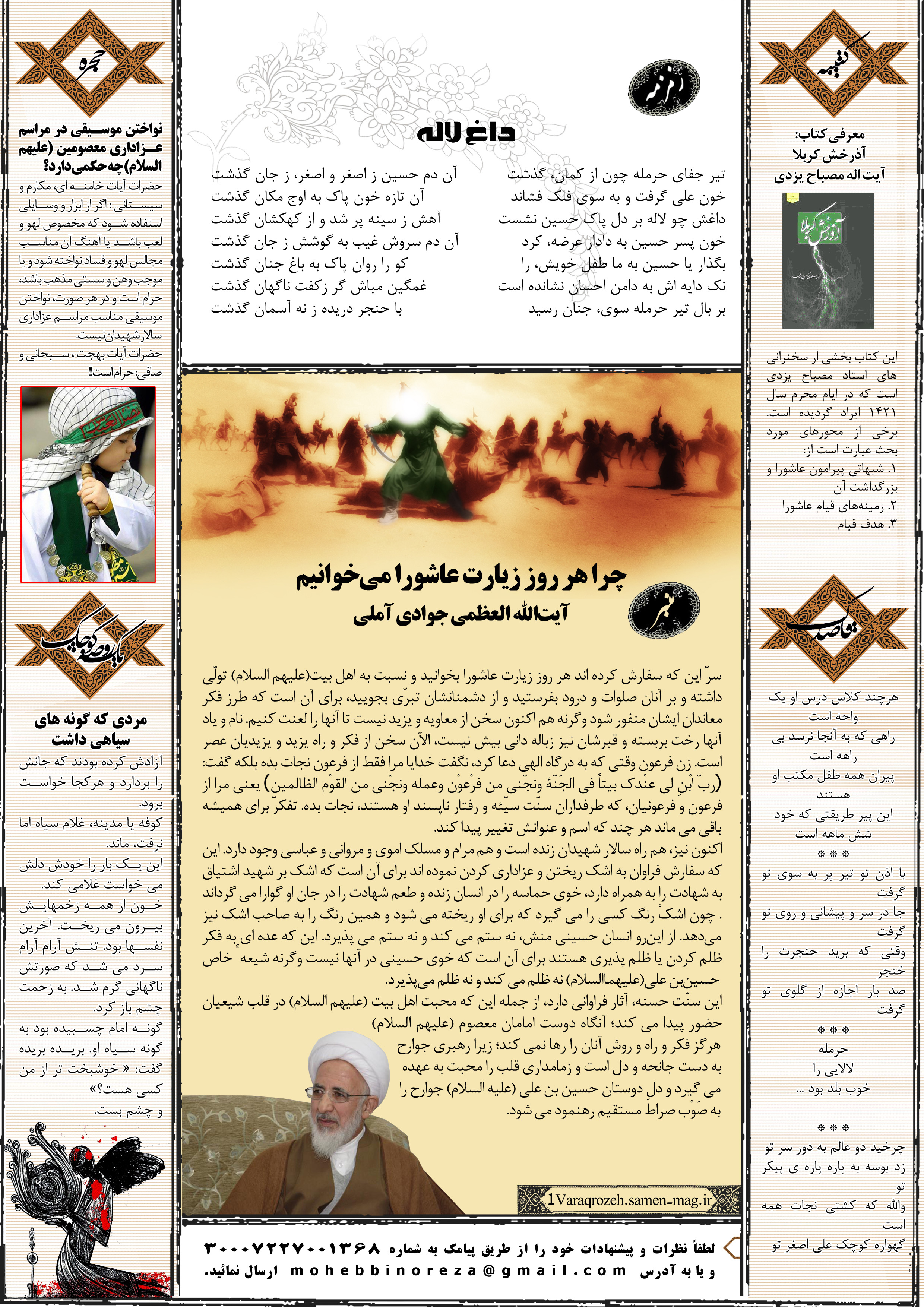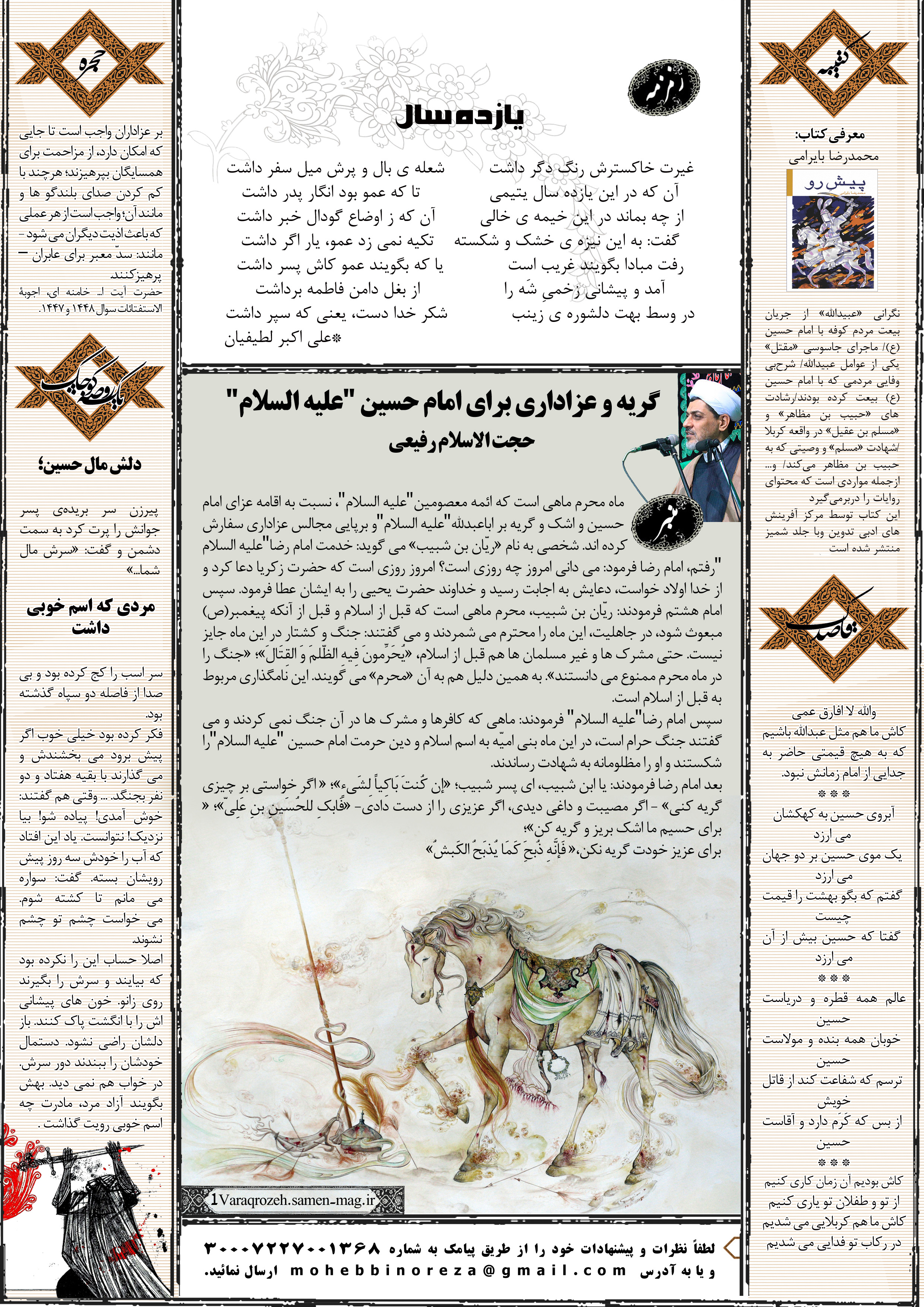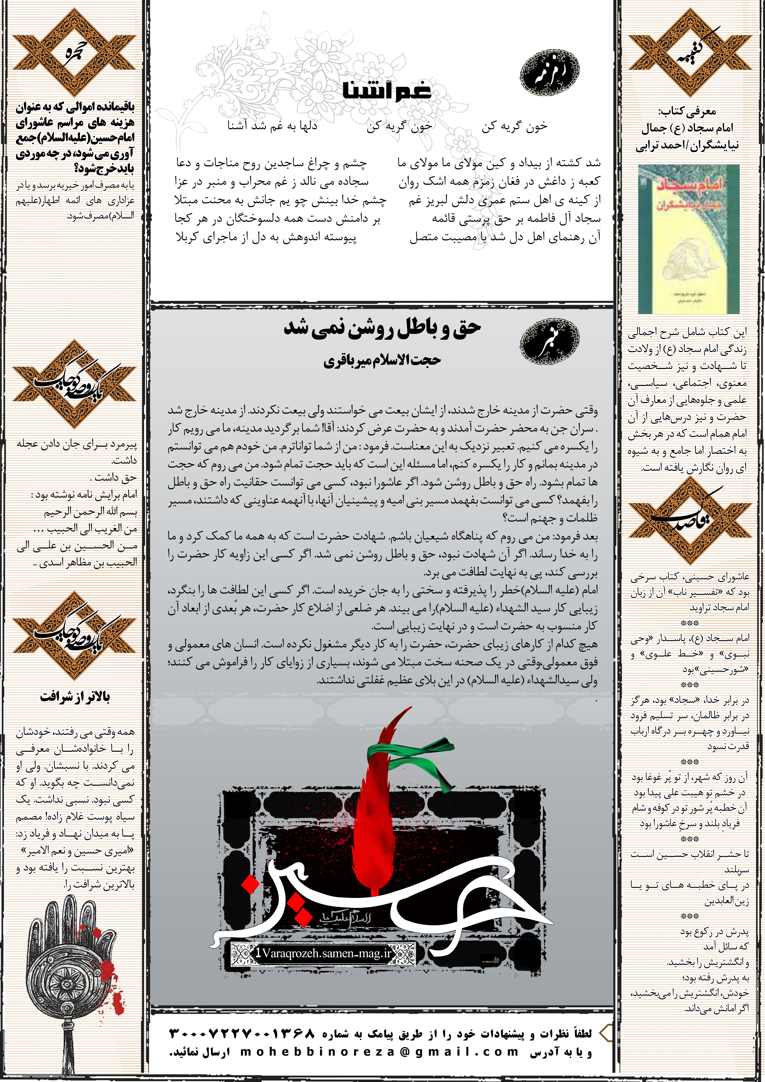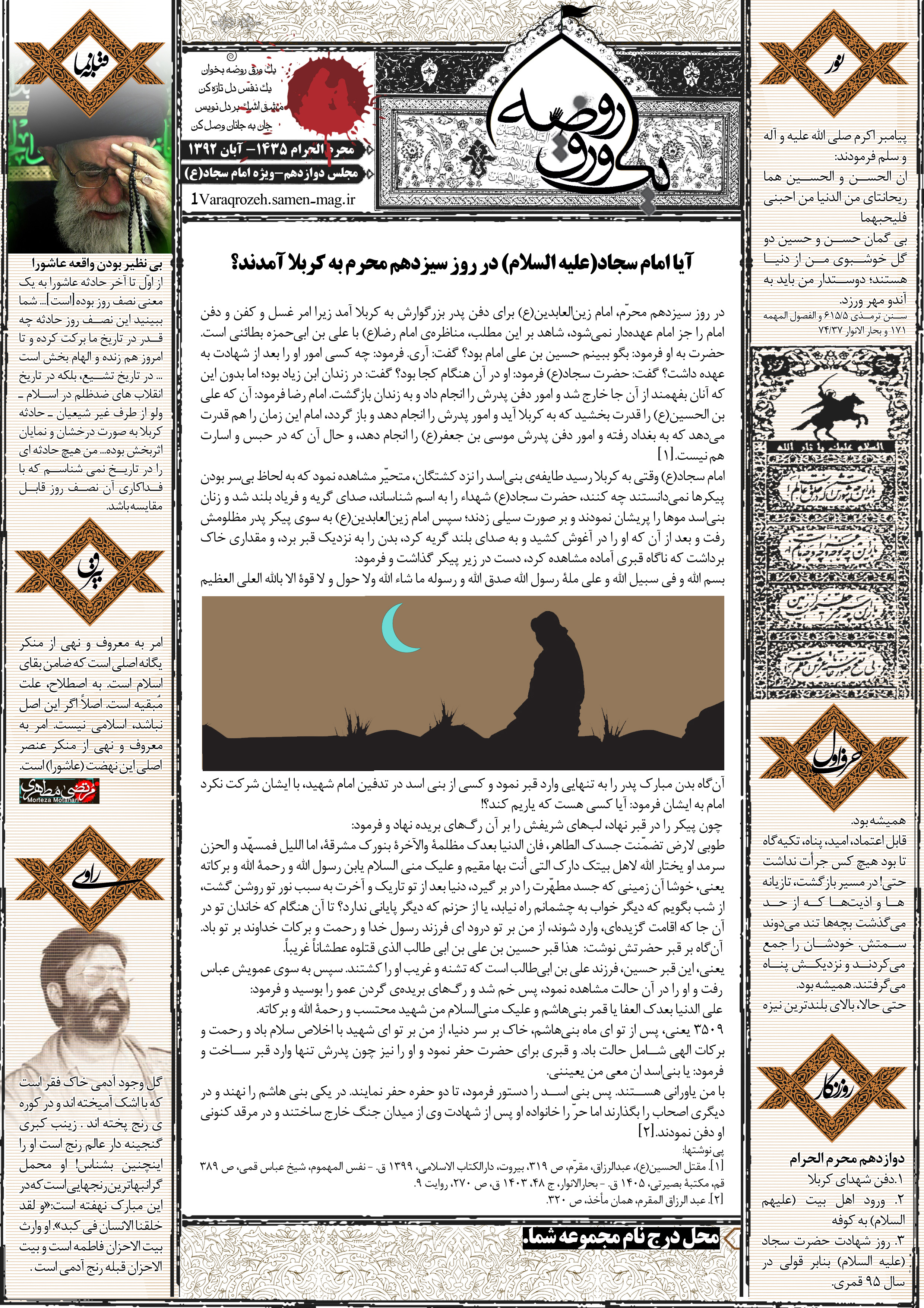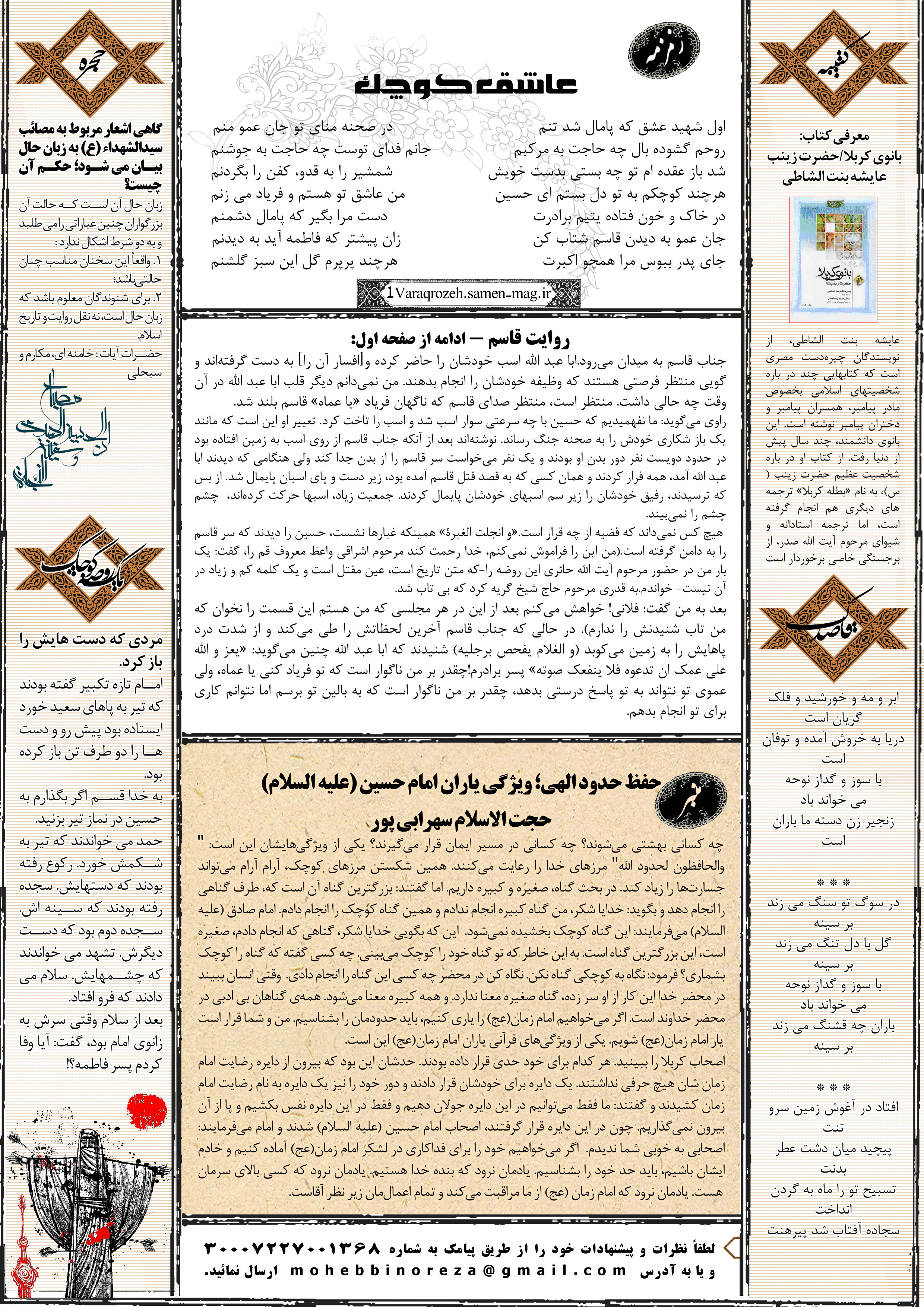 جهت مشاهده پیش نمایش بزرگتر این شماره از «یک ورق روضه» می توانید بر روی تصویر فوق کلیک نمائید.