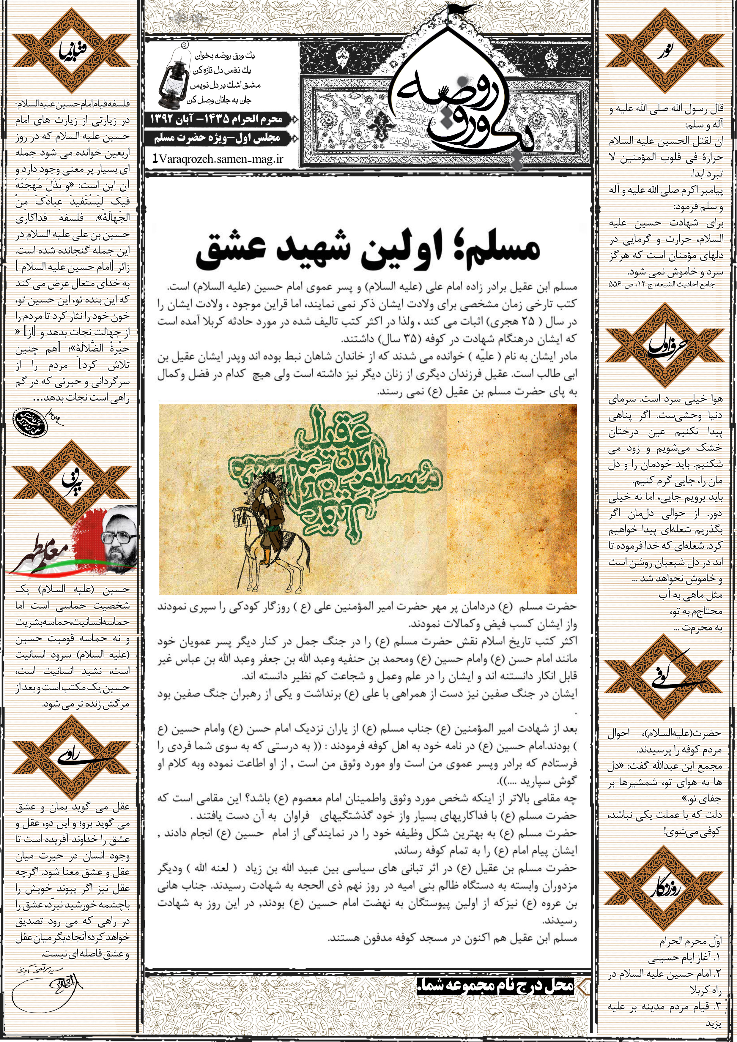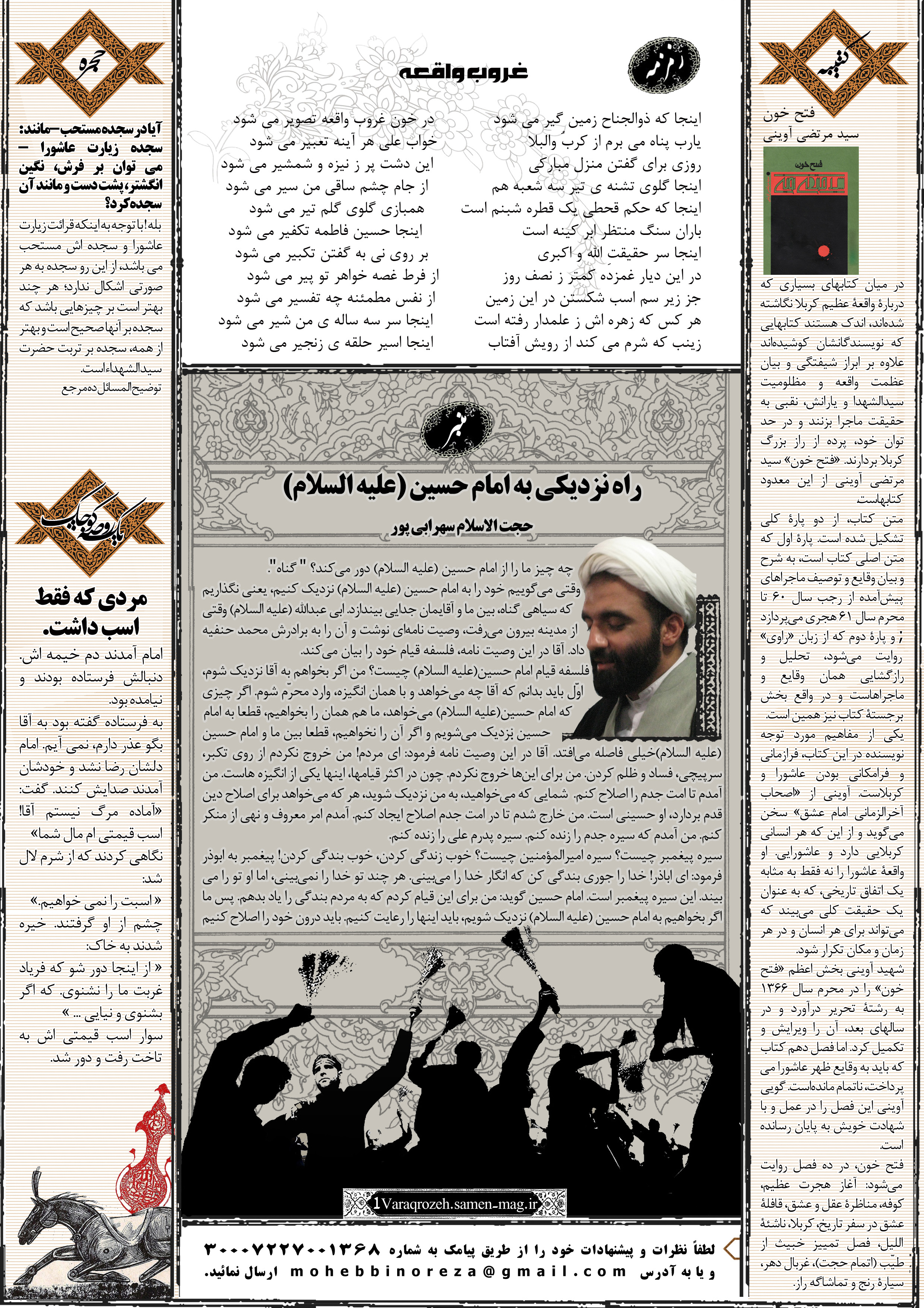 در هر شماره، مکان مناسبی طراحی شده، تا هیات ها و مجموعه های مختلف، نام و آرم خود را در آن قسمت درج کرده و «یک ورق روضه» را در پایان برنامه های خود و به نام خود در بین حاضرین در مراسم توزیع کنند.
